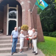 Uiteindelijk werd in een mooi verpakte “knapzak” met rode zakdoek het bedrag door Lineke en Kees voor de Koepel overhandigd aan de voorzitters van de Stichting en Vereniging.