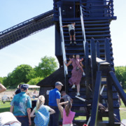 Bij de molen stonden steevast een groepje durfals te wachten om de steile trap naar het molenhuis te beklimmen. Dat er slechts twee wieken het moeten doen om de molen draaiende te houden, deert ze niet. De overige twee wieken zijn in onderhoud vanwege houtrot.