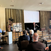 ‘Toen ik werd gevraag door Otto om hier iets te zeggen toen was ik nog iemand, toen was ik nog niet werkeloos en ambteloos burger. Toen ik nadacht over deze twee kerels dacht ik het zijn twee zieners, daar waar ik een tak zie, daar ziet Wiebe kunst. Daar waar ik een eik zie, zie ik een boom, daar ziet Otto een cultuur, een verhaal. Een ziener ziet iets wat gewone stervelingen niet zien en ik al helemaal niet, dat is een gave. Het mooie is dat deze twee mannen ons ook iets laten zien. Een ziener is iemand die jou bij de hand neemt en zegt joh, kijk daar eens. Op het Kootwijker Zand hebben we onder leiding van Otto een tweedaagse beleeft en Otto laat je dan anders kijken naar een boom, een gevallen tak of een struik. Je ziet dingen die je anders niet had gezien en Wiebe dat heb jij ook, dat zullen we zo dadelijk aan de overkant in het museum zien. In de hitte van de zomer kan het gaan zinderen je kunt dan iets gaan zien dat er mogelijk zou zijn, de een noemt het een fata-morgana de ander noemt het een visioen. Door dat wat zieners je laten zien krijg je zicht op dat wat gaat komen en dat is de hoop. Ons geloof kan zwak zijn, wankelmoedig, het kan lauw zijn, kan ons soms ontvallen. Misschien onderscheiden we ons helemaal niet van mensen die helemaal niet geloven. Zieners bieden ons het zicht op de hoop, in een boom zien zij een verhaal. In een stuk hout zien ze een gebedsnoot. In de natuur zien ze God die zegt ‘Ik maak alle dingen nieuw’. Alles wat je ziet wordt nog zoveel mooier. Ik ben een man van het doen-doen-doen, man van het veel spreken en van veel actie. Nu ben ik even stilgezet. Otto en Wiebe, jullie houden ons een spiegel voor wat God ons heeft te zeggen door de natuur. Dat geeft ons hoop als alles nieuw wordt gemaakt.’