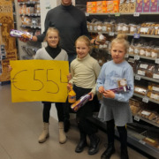 DE VALK – Tijdens een les nieuwsbegrip ging het over de aardbeving in Turkije en Syrië. Er werd gevraagd wat de kinderen zouden kunnen doen voor deze slachtoffers. Al gauw kwam bij deze meiden het idee om koeken te verkopen. Ze zijn naar PLUS PATERin Harskamp gegaan en die was zo enthousiast, dat hij zóveel koeken wilde sponsoren als dat ze verkochten! Door de goede inzet van deze meiden én Plus Pater in Harskamp, hebben ze het prachtige bedrag van €554,– opgehaald!