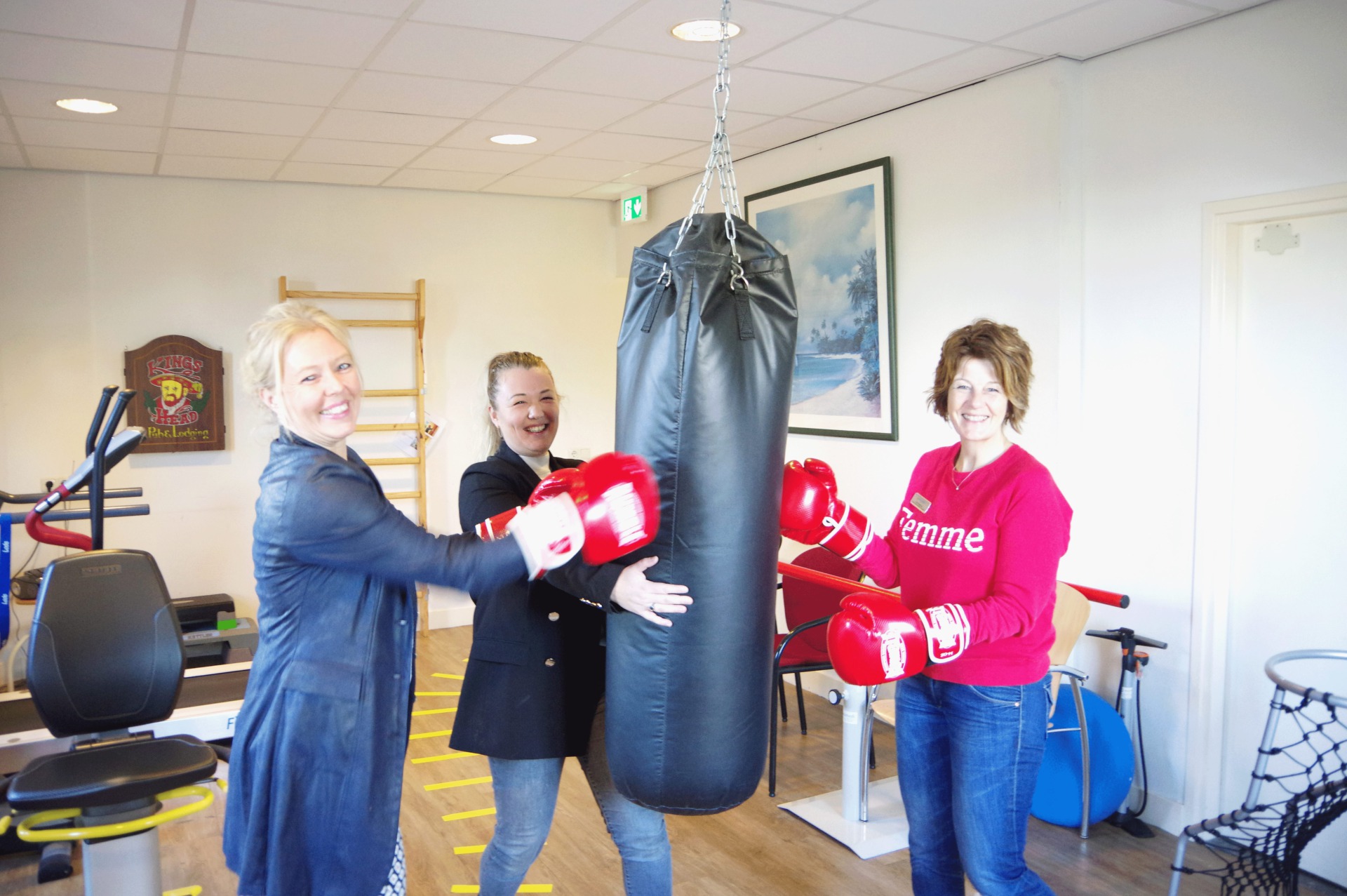 Op foto: v.l.n.r.: Margreet van Veldhuizen, Chantal van Veldhuizen en Anita Broekhuizen in de fitnisruimte van Kulturhuus De Hooge Valk.