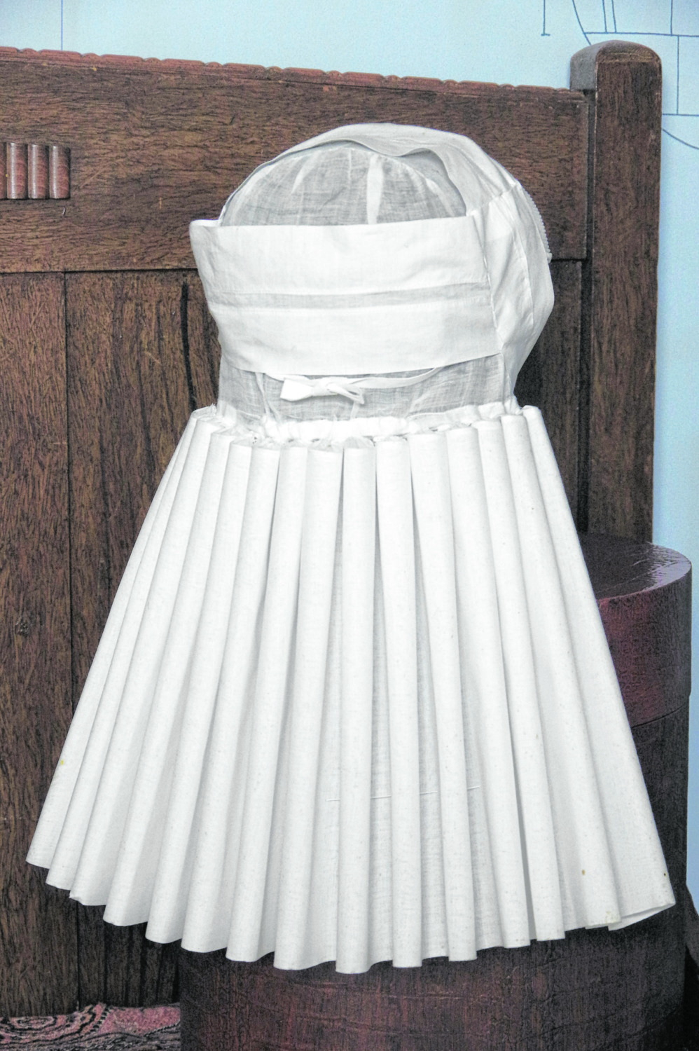 Een muts mocht beslist niet nat worden. Vrouwen droegen in die tijd een aantal wijde rokken over elkaar. Bij regen werd de buitenste rok van achter over de muts getrokken – als een soort paraplu. Daaronder droegen ze bijvoorbeeld een mooie, zwarte, gebloemde rok.