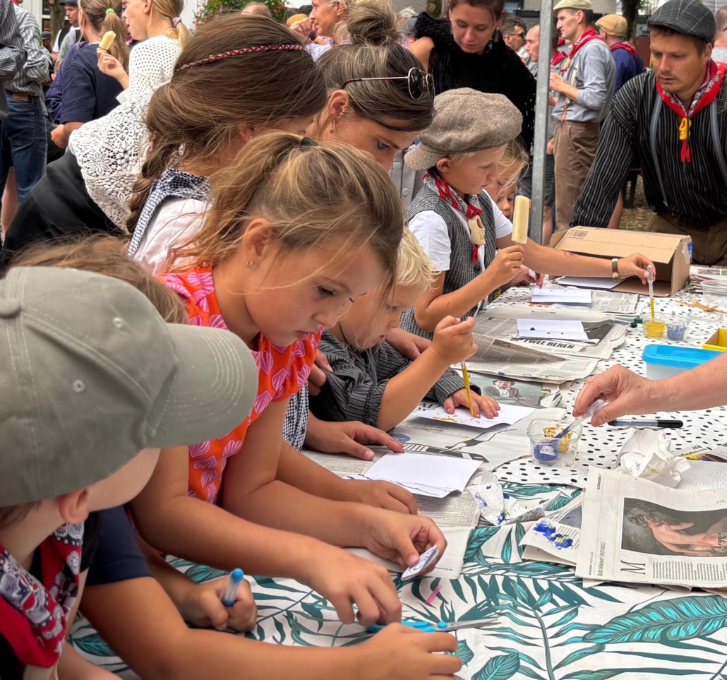 LUNTEREN – Het was een drukte van jewelste vrijdag 29 september bij de tafels van Museum Lunteren. Hier zaten kinderen stil en uiterst geconcentreerd te verven; daar hoorde je opgetogen kreten over een wegschietend karretje dat ze zelf hadden gemaakt naar een oud model.