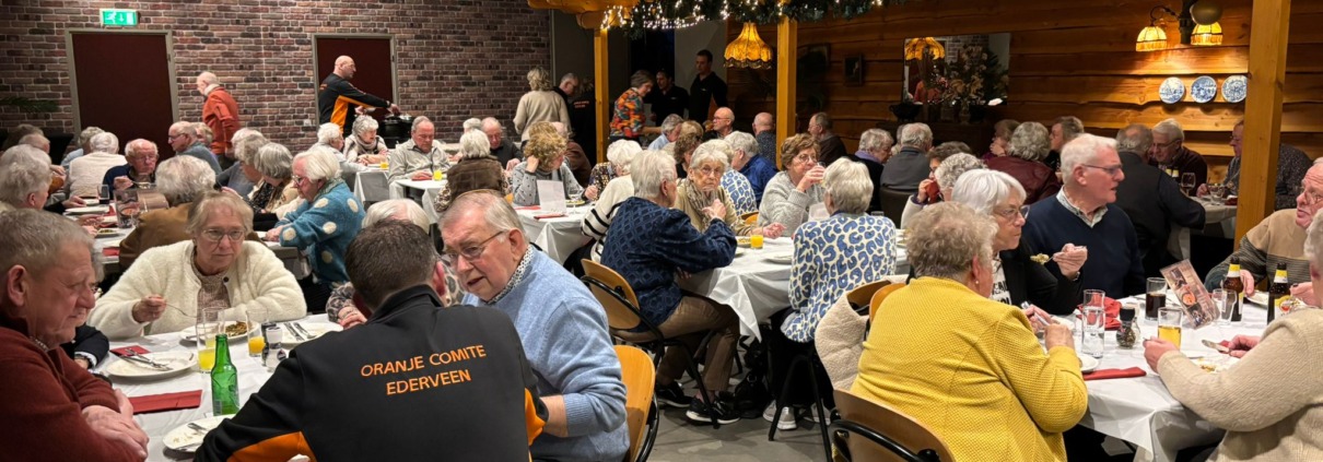 EDERVEEN – Afgelopen vrijdag 7 februari organiseerde het Oranje Comité Ederveen een sfeervol diner voor dorpsgenoten van 70 jaar en ouder. Maar liefst 74 senioren namen plaats aan tafel voor een gezellige en smakelijke avond, die hen geheel kosteloos werd aangeboden.