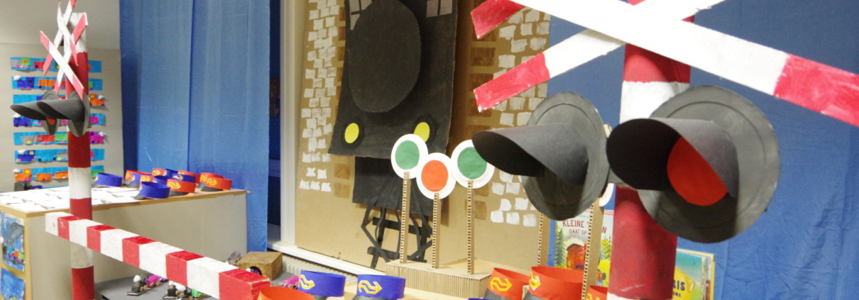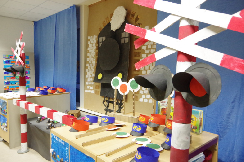 Al bij het eerste lokaal viel op hoe realistisch de kleuters van groep 1-2 het thema trein hadden uitgewerkt. De Valk heeft weliswaar nooit een eigen station gehad, maar als het aan deze jongens en meisjes ligt, kan dat misschien weleens bewaarheid worden. Zij waren met z’n allen zelf op onderzoek uitgegaan: met de NS-trein van Lunteren naar Ede-Wageningen. Een hele belevenis, niet alleen voor de kinderen, maar ook de meereizende moeders zaten vaak voor het eerst in een trein.