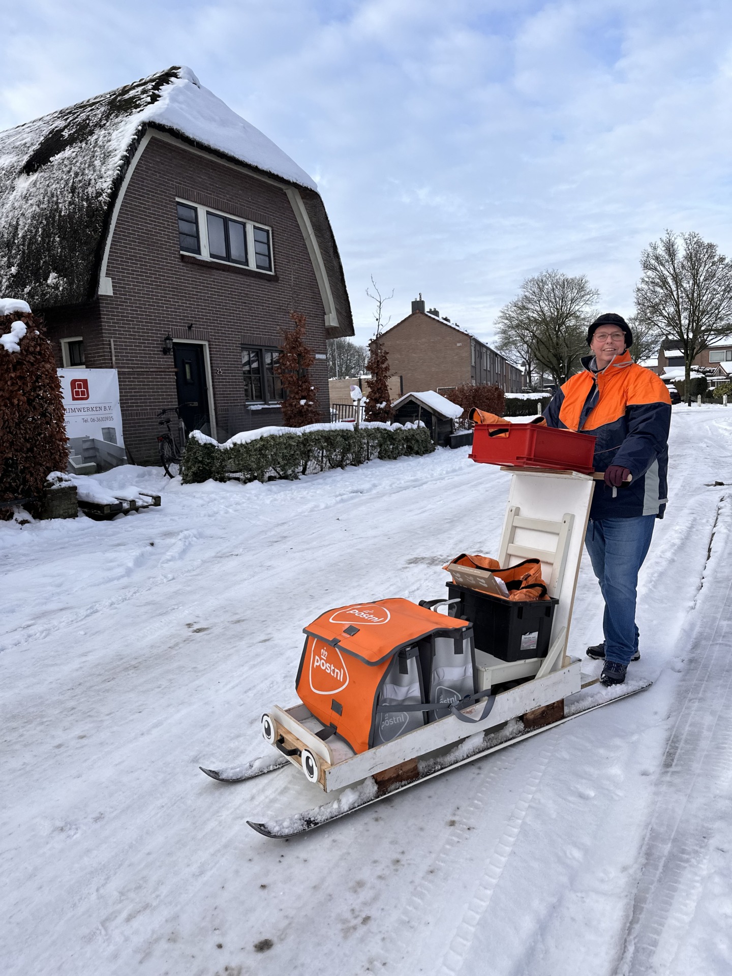 De man van Edith was eveneens creatief geweest en had een speciale slee gemaakt, zodat zij veilig de post kon bezorgen. Beide taferelen zorgden voor veel glimlachende gezichten bij de inwoners.
